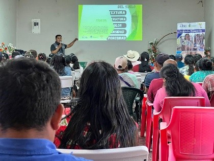 Durante las jornadas de Transferencias Monetarias Multi propósito, los técnicos impartieron una capacitación correspondiente al Módulo II “Diagnostico Visual del Suelo” para fortalecer su conocimiento sobre la mejora de la productividad y la resiliencia climática, basándose en el enfoque de Agua y Suelo pata la agricultura.